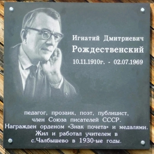 5 июля 2025 года в  селе Чалбышево по-новому открыли  имя поэта Игнатия  Рождественского. В торжественной обстановке с предварительной краткой справкой об И.Д. Рождественском, о том, в каком доме он жил в Чалбышево, кем работал, об истории его любви, была открыта мемориальная доска в честь учителя, поэта, публициста, члена Союза писателей СССР. В  местной библиотеке размещается небольшая выставка сборников стихов и очерков Игнатия Дмитриевича, а на центральной стене расположен баннер с портретом И.Д. Рождественского на фоне села Чалбышево и его стихотворение: